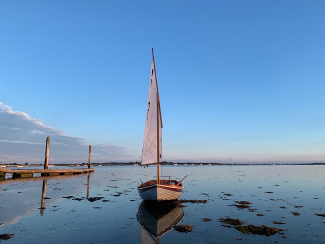 The Scow is a flat bottomed, lug sailed dinghy, 11′ 3″ or 11′ 4″ feet long, widely sailed in the waters surrounding the Solent, between the Isle of Wight and the mainland. There are many local variations, such as the Bembridge Scow, the Beaulieu River Scow and the West Wight Scow